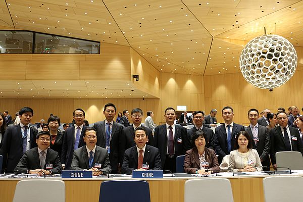 中國駐日內(nèi)瓦代表團特命全權(quán)大使馬朝旭出席了會議。中國政府代表團由外交部、國家工商行政管理總局、新聞出版廣電總局(國家版權(quán)局)、國家知識產(chǎn)權(quán)局、常駐日內(nèi)瓦代表團及中國香港特別行政區(qū)知識產(chǎn)權(quán)署共同組成。